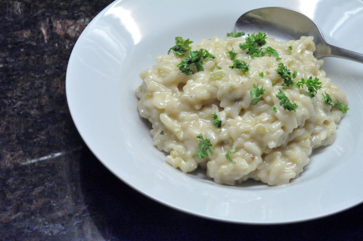I had a little of celery left in the refrigerator and was trying to figure out what is it that I can make. What popped in my mind was Risotto Bianco!