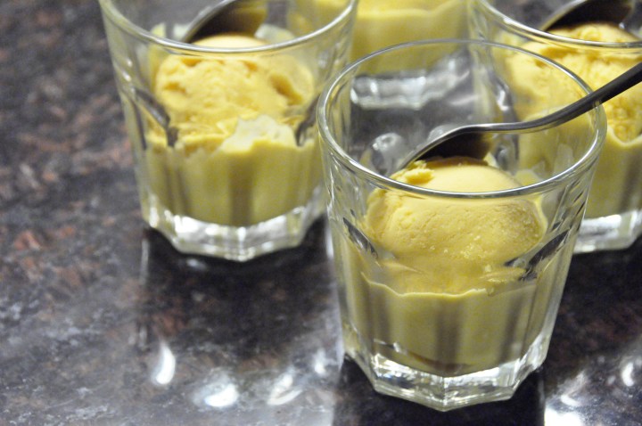 A few nights later, I thought, “Since the mangoes are sour, what if I made ice cream out of them?” The result – YUMMILICIOUS!!!  Here’s how I made my Homemade Mango Ice Cream.