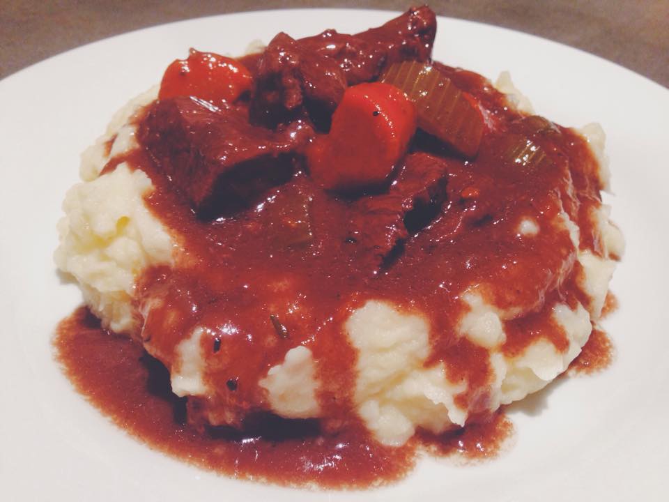 Thanks to FoodWishes.com and unlike Boeuf Bourguignon, this one pot dish is surprisingly simple to make. All you need are the few ingredients in the pot, have it simmered on the stove for less than 2 hours and then, VOILA! You’ve got Beef Merlot!